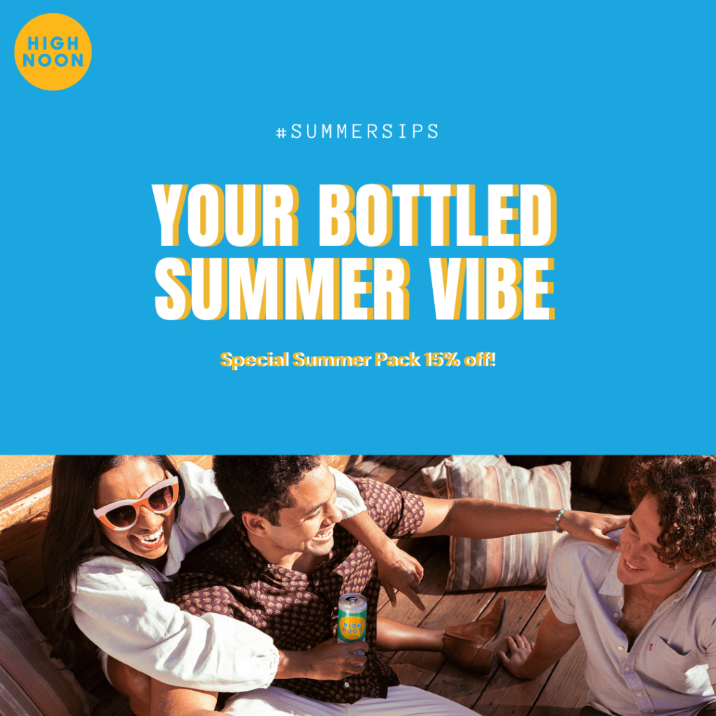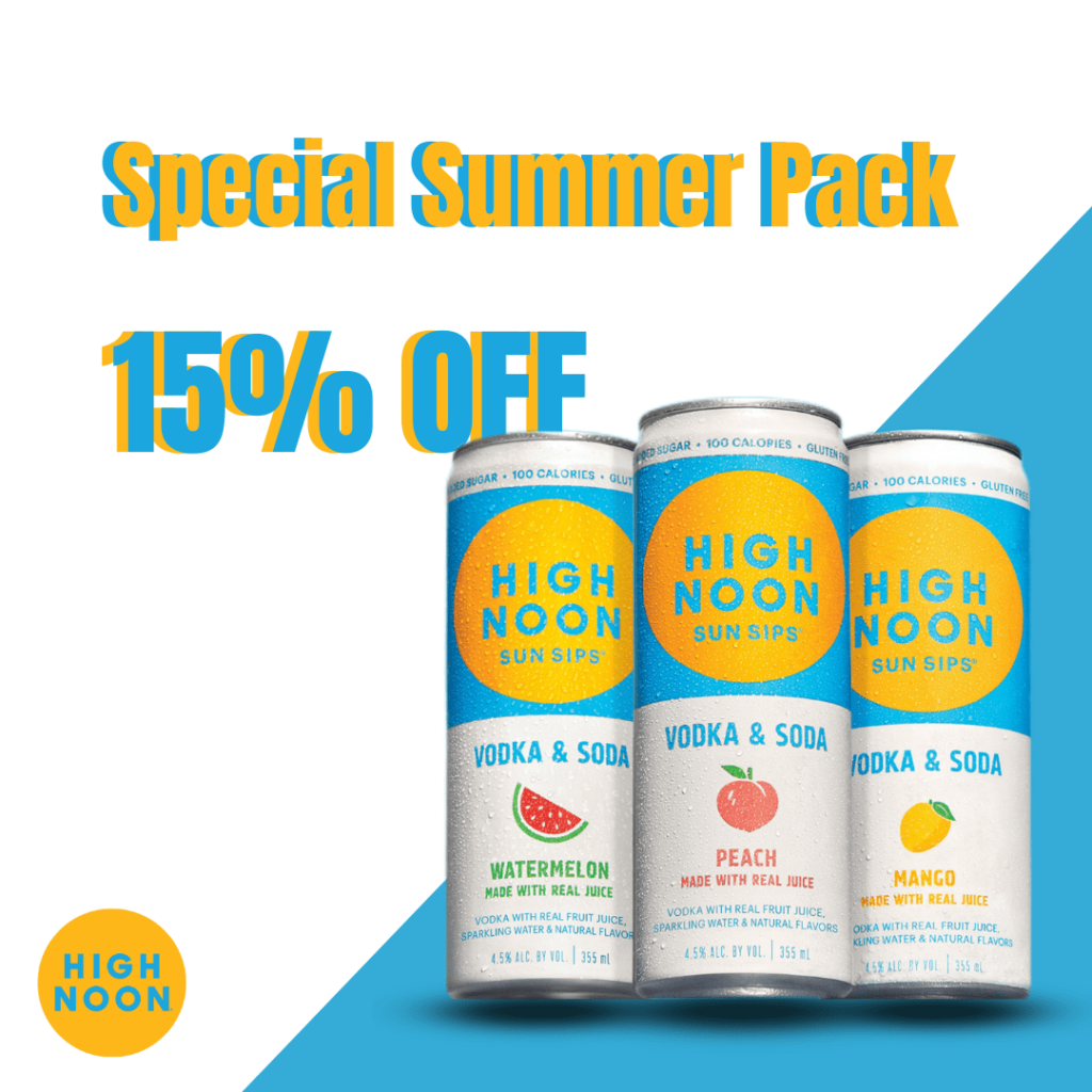 [sunshine emoji] Savor summer with #HighNoonSummerSpecial pack! Enjoy 15% off and soak up the sun with every sip. #SummerSavings #SummerSips